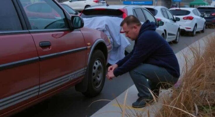 The car looked like it had survived a dozen winters too many. Beside it stood an elderly couple, wrapped in thin jackets that the wind sliced right through.