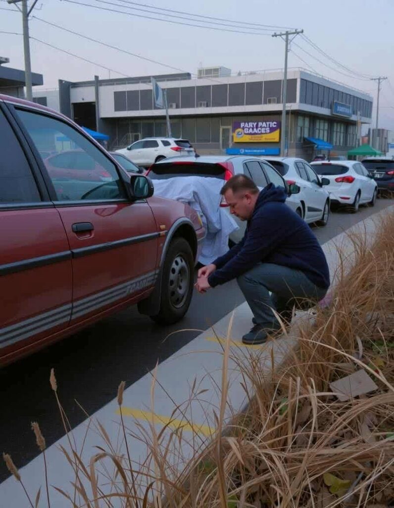 The car looked like it had survived a dozen winters too many. Beside it stood an elderly couple, wrapped in thin jackets that the wind sliced right through.