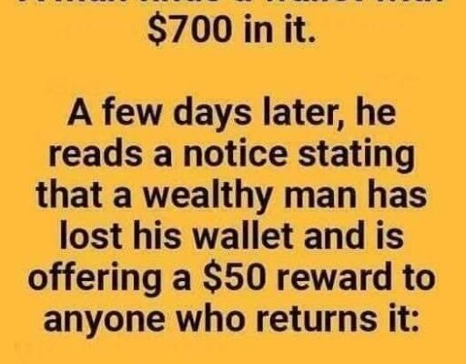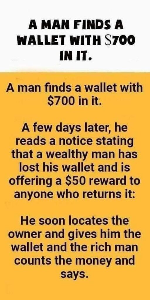 The rich man replies, “This wallet had $750 in it when I lost it.”