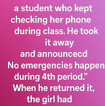 Our teacher mocked a student who kept checking her phone during class. He took it away and announced, “No emergencies happen during 4th period.” When he returned it, the girl …