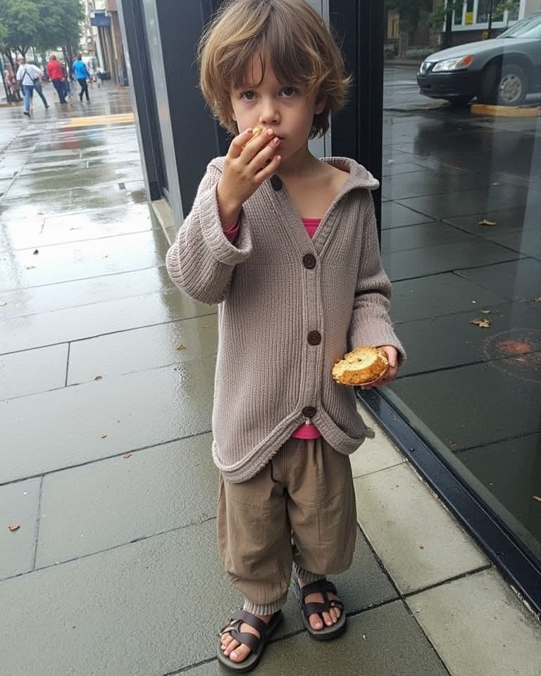 He stood outside a café called The Corner Bean, staring through the glass at the people inside. He couldn’t have been older than seven or eight. His sweater was so thin I could see the outline of his small shoulders, and his jeans were damp and clinging to his legs. His shoes looked like they’d been through too many winters already.