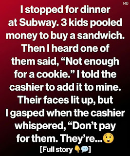 “Those three come in every Friday,” she explained softly. “They always pool their money to buy one sandwich and share it between them.”