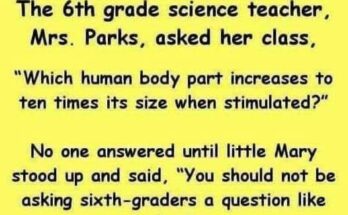 The 6th-grade science teacher, Mrs. Parks, asked her class, “Which human body part increases to ten times its size when stimulated?” No one answered until little Mary stood up and …