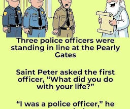 Three police officers were standing in line at the Pearly Gates Read More