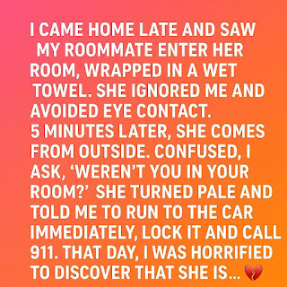Just as I set my bag down, I noticed movement at the end of the hallway. My roommate hurried past, wrapped in a towel with damp hair hanging over her shoulders, as if she had just stepped out of the shower. She didn’t say hello or even glance in my direction. Normally we would exchange a few quick words when one of us came home—sometimes about our day, sometimes about something trivial like dinner plans. But this time she moved quickly, almost urgently, disappearing into her bedroom and closing the door behind her.