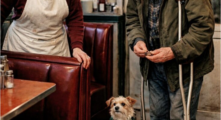 At noon, the bell above the door chimed. I looked up, and there he was. Henry stood in the entryway, his hat held respectfully in his hands. He looked different than the disheveled man I’d served the night before; his posture was straighter, his eyes clearer. Oliver’s small head peeked out from the fold of his wool coat, his tail thumping rhythmically against Henry’s side.