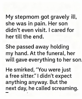 When my stepmother fell ill, it happened quietly, the way life sometimes unravels when no one is paying attention. The doctors used careful words, but her pain spoke louder than any diagnosis. Her son lived only a few towns away, yet weeks passed without him coming. At first, I told myself he was busy, overwhelmed, or afraid. So I stepped in. I cooked, cleaned, managed medications, and sat beside her bed through long nights when sleep refused to come. We talked about small things—recipes she loved, memories from before sickness changed everything. In those moments, she wasn’t my stepmother anymore. She was simply a woman who didn’t want to be alone.